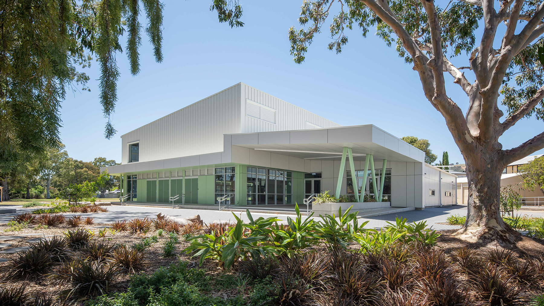 Stretching more than 50 metres east to west across the site, the new building greets students and parents on arrival from Highet Avenue with learning spaces addressing the campus’ extensive playing fields and nature play spaces.