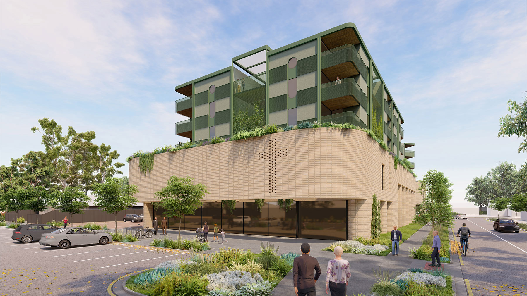 Connection to the neighbouring train line, and inclusion of secure bike storage and end of trip facilities, promote a sustainable lifestyle, with minimised carparking provisions. Activating the ground floor with retail reintroduces the kind of everyday connections that defined a time gone by.