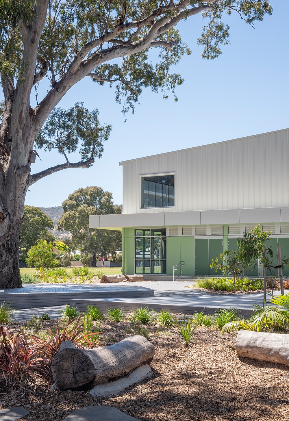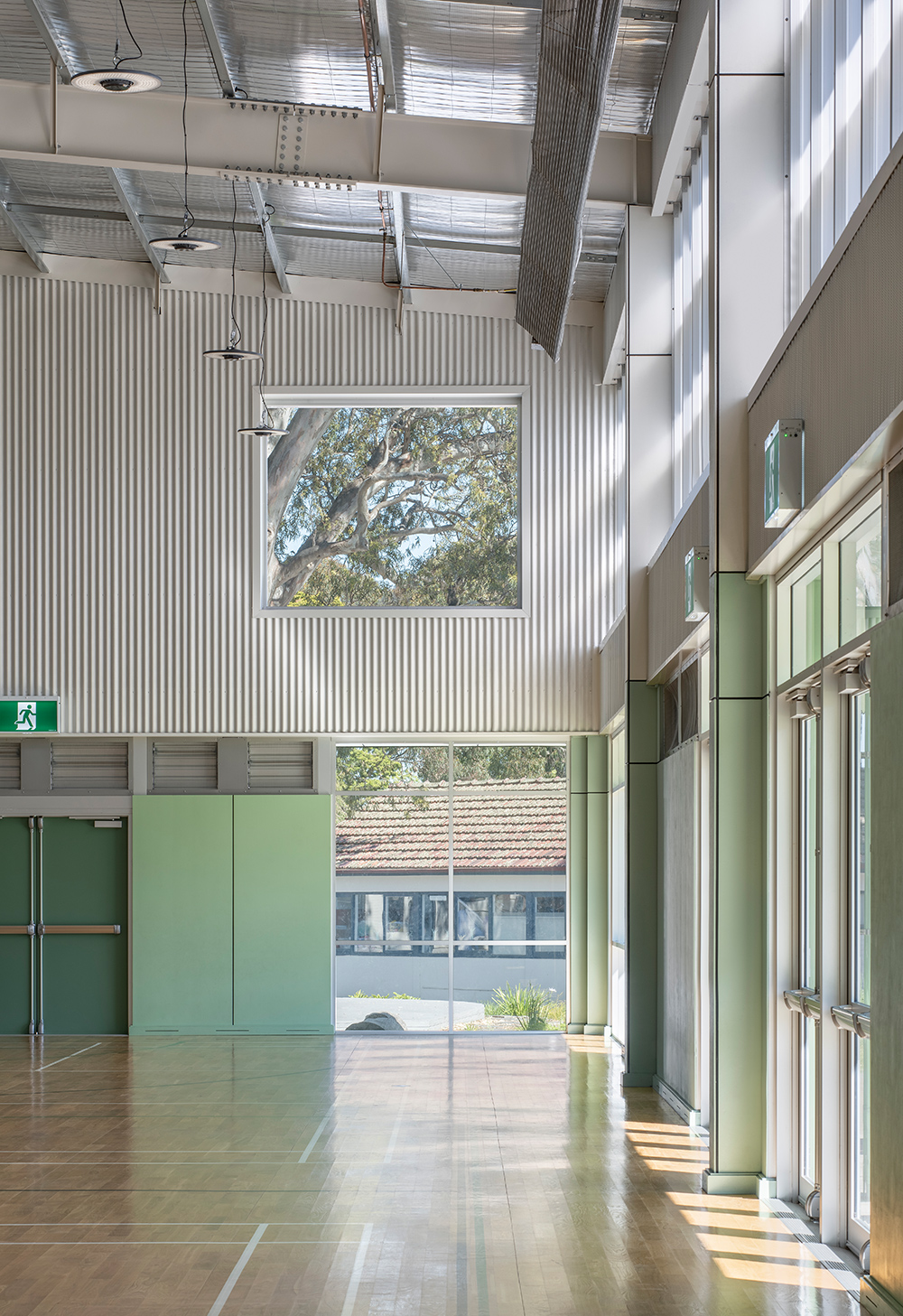 Nestled within suburbia and surrounded by vibrant community life, the old gym stood as a relic of a bygone era alongside the school’s beloved grove of established native gums – so symbolic of the site that they form the school’s current emblem. With a vision to embrace and enhance its surroundings, MPS sought a design that would not only complement but also elevate the grove, symbolically acknowledging the past while looking to the future.