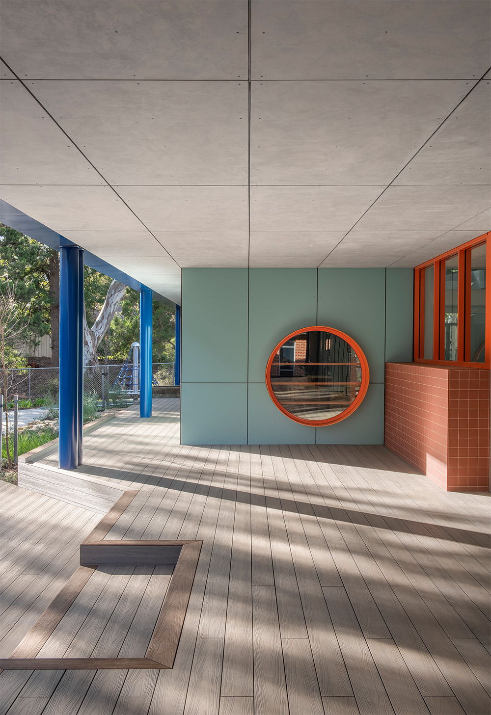 Savings unearthed through reuse of the existing structure’s footings and slab also unlocked funds to upgrade the adjoining four Year 1 teaching spaces bookending the expansive Nature Play.